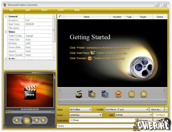 3herosoft Video Converter - поддерживает практически все популярные портативные устройства, такие как IPod, iPhone, PS3, PSP, Xbox, Apple TV, Zune, Creative Zen, Blackberry, мобильный телефон, Archos, Pocket PC и т.д. 3herosoft Video Converter поддерживает так все вокруг видео форматов, таких как WMV, AVI, DivX, MPEG, MP4, H.264/MPEG-4 AVC, RM, MOV, XviD, FLV, 3GP, VOB (видео формат, используемый в DVD) , DAT (видео в формате VCD, SVCD), и так далее. Она также может извлекать аудио из видео файлов и конвертировать их в M4A, MP3, AC3, AAC, WMA, WAV, OGG, как вы хотите.