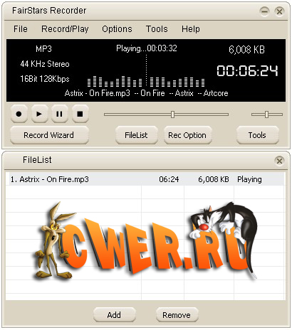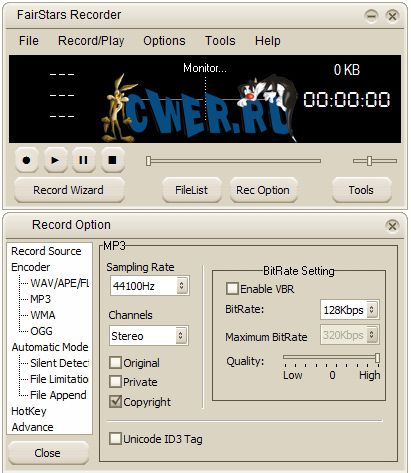 Обновилась программа для записи аудио в режиме реального времени с разных источников - FairStars Recorder. Программа записывает любой звук идущий через звуковую карту: с микрофона, интернета, аудио/видео плееров и с любых других устройств. Сохраняет записи в файлах следующих форматов: WMA, MP3, OGG and WAV, причем кодирует в вышеперечисленные форматы напрямую, минуя промежуточного создания WAV файлов. Кроме того программа умеет конвертировать файлы между форматами: WMA, MP3, OGG and WAV и имеет встроенный редактор тегов.