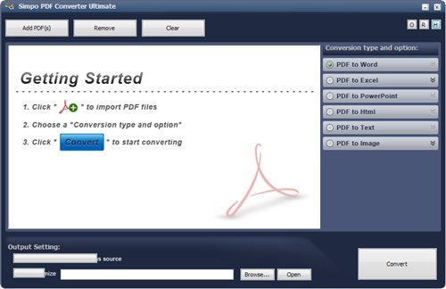 Simpo PDF Converter Ultimate - программа для конвертирования PDF-файлов в другие форматы. С этой программой вы можете конвертировать ваши PDF-файлы в такие форматы как Word, Excel, PowerPoint, Text, HTML, а также изображения. Интерфейс программы легкий и простой в работе, качественное преобразование и быстрая скорость преобразования.