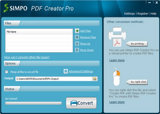 Simpo PDF Creator - позволяет использовать несколько методов для создания PDF документов - пользовательский интерфейс, виртуальный принтер и функции правого клика мыши. Вы можете конвертировать документы Word, Excel, PPT, изображения, HTML и любые другие распечатываемые документы в формат PDF. Кроме того, вы сможете установить пароль для защиты ваших PDF документов.