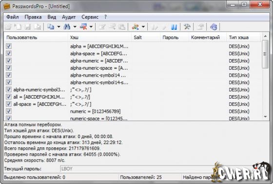 PasswordsPro – профессиональная программа для восстановления паролей к хэшам. Программа имеет удобный интерфейс, не требует установки, а также содержит множество настроек, позволяющих гибко и эффективно восстанавливать пароли к хэшам. Также программа поддерживает внешние плагины, с помощью которых можно существенно расширить ее возможности. Наличие открытого и удобного API позволяет очень быстро дополнить программу нужным модулем хэширования, который можно написать на любом языке программирования. В настоящее время программа поддерживает более 30 типов хэшей, при этом легко можно добавить новый тип хэшей, написав свой собственный внешний DLL-модуль для хэширования. Максимальное количество модулей, с которыми программа может работать одновременно – 256.