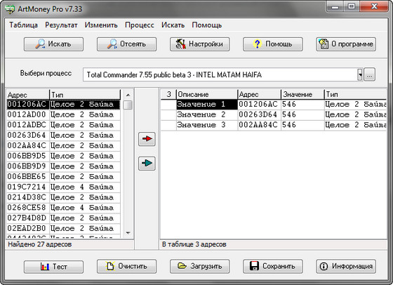 Программа ArtMoney предназначена для редактирования параметров в компьютерных играх, для получения бесконечных денег, жизней, патронов и т.п. Она умеет сканировать память или файлы игры для поиска каких-то определенных значений (деньги, ресурсы и т.д.). Таких значений может быть много и надо выбрать нужные, поэтому поиск разделяется на два этапа - поиск значений и отсев ненужных значений. В итоге получаем адреса, в которых находятся числа, и их можно изменить на нужные.