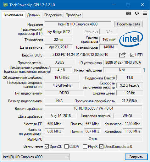 Cwer.ws представляет новую версию программы для получения сведений о графическом адаптере. GPU-Z поддерживает видеокарты NVIDIA и ATI. Утилита поможет определить, какая модель видеокарты установлена ​​на вашем компьютере, узнать интерфейс подключения, показать, какой именно графический процессор используется (версия BIOS, номер ревизии чипа, частота в 2D, 3D-режимах и при разгоне, сведения о поддержке DirectX).