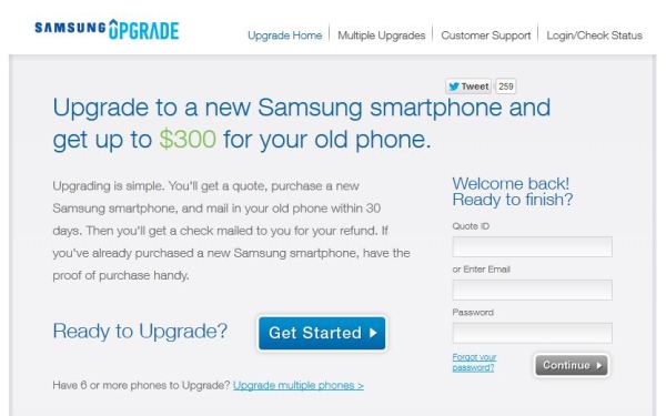 Компания Samsung предоставила возможность покупателям новых смартфонов Galaxy S III, Galaxy S II и Galaxy Note сдать их старые мобильники за плату. Специальная программа под названием Samsung Upgrade опубликована на странице компании в Facebook.