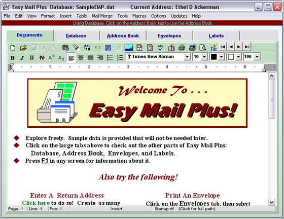 Easy Mail Plus напечатает и отправит ваше сообщение по факсу или по электронной почте, подготовит конверт и напечатает марку. И лучше всего то, что вы не меняете настройки вашего принтера! Встроенная функция импорта использует простую технологию перетаскивания для того, чтобы быстро создавать Address файлы с ваших существующих файлов с данными.