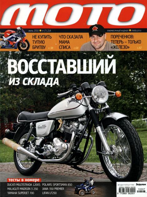 Крупнейший отечественный журнал о мототехнике и мотоциклистах. Выпускается издательством "За рулём" с 1991 года. В каждом номере: премьер-тесты, обзоры выставок, мировые новинки, актуальные тенденции рынка; рассказы о захватывающих поездках на мотоциклах по миру и России, о приключениях, описание маршрутов; секонд-тесты, лучшие модели прошлых лет; экзотические, уникальные мотоциклы и их создатели; обзоры выставок и многое другое.