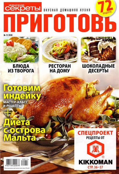 Специальное кулинарное приложение к известному журналу "Женские секреты". Каждый выпуск посвящен определенной теме. В каждом номере журнала - кулинарные рецепты с подробнейшим поэтапным описанием приготовления блюда. Каждый шаг на пути к кулинарному шедевру иллюстрирован цветными фотографиями.