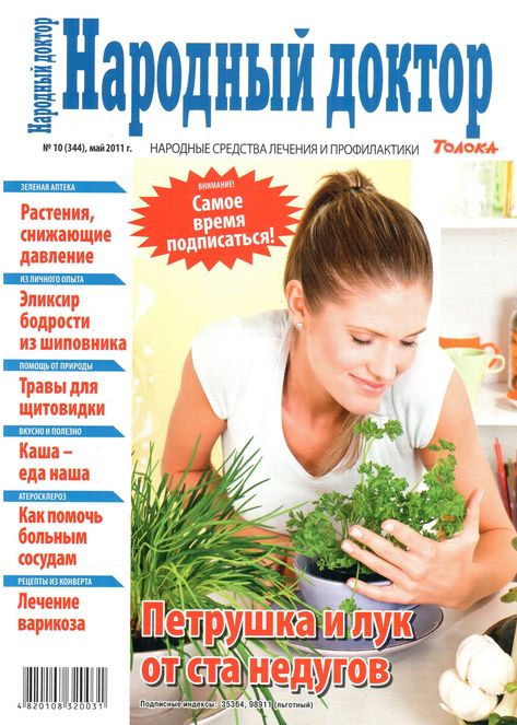 Журнал содержит народные средства лечения и профилактики. Это советы врачей, травников, целителей, рецепты лечения, присланные читателями, полезная информация о лекарственных растениях с цветными иллюстрациями.