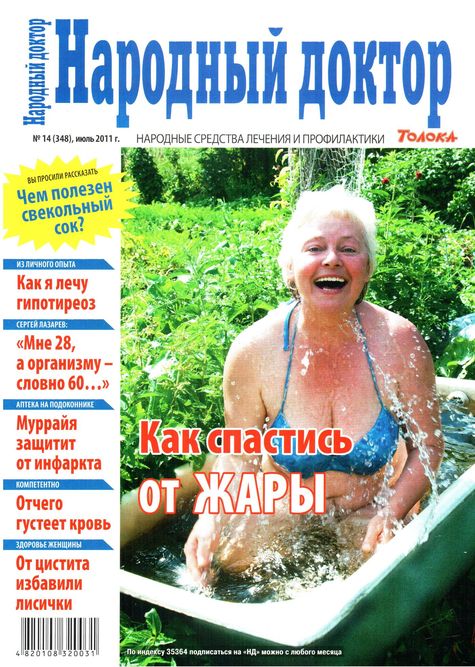 «Народный доктор» - это советы врачей, травников, целителей; рецепты лечения, присланные читателями; полезная информация о лекарственных растениях с цветными иллюстрациями.