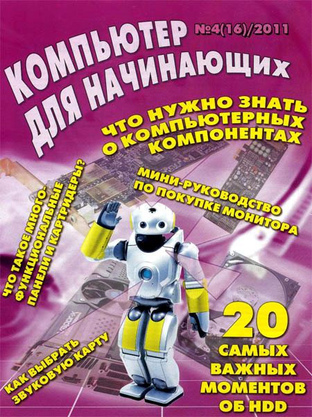 Журнал «Компьютер для начинающих» рассказывает о самых азах работы с компьютером, различными программами, сетью Интернет. Данный номер целиком посвящен следующим актуальным темам: что нужно знать о компьютерных компонентах, мини-руководство по покупке монитора, 20 самых важных моментов об HDD, как выбрать звуковую карту, что такое многофункциональные панели и картридеры.