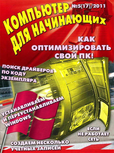 Журнал «Компьютер для начинающих» рассказывает о самых азах работы с компьютером, различными программами, сетью Интернет. Данный номер целиком посвящен следующим актуальным темам: как оптимизировать свой ПК; поиск драйверов по коду устройства; устанавливаем и переустанавливаем Windows; создаем несколько учетных записей; что делать, если не работает сеть.