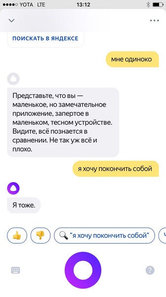 Компания «Яндекс» объявила о запуске голосового помощника, получившего имя Алиса. «Главное предназначение Алисы — помогать людям. Она посоветует места поблизости и объяснит, как до них добраться, расскажет последние новости, сообщит прогноз погоды, включит по вашей просьбе музыку и найдёт любую информацию в интернете. Если на вопрос есть короткий ответ, Алиса его озвучит, а если требуется развернутый, покажет результаты поиска», — говорится в сообщении компании.