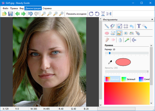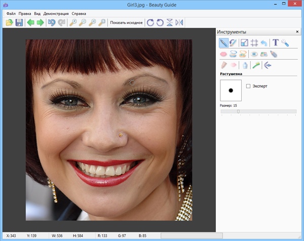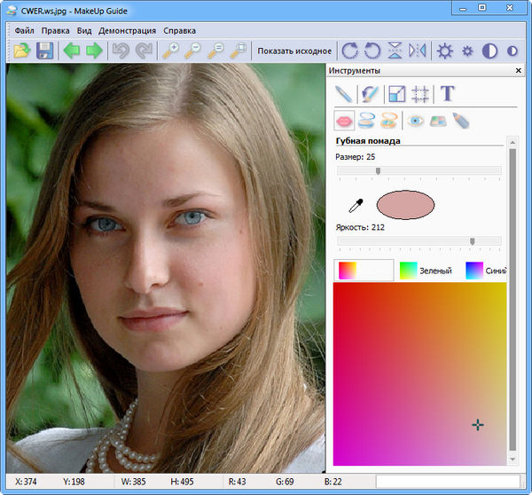 Beauty Guide - это программа для выполнения макияжа и устранения косметических дефектов непосредственно на фотографиях. Сделайте Ваши снимки еще лучше!