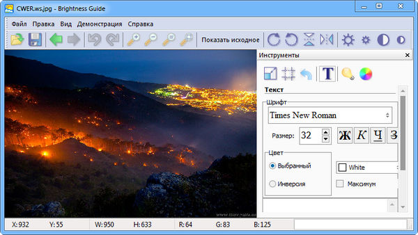 Brightness Guide - улучшает яркость фотографий. Осветляет темные области, оставляя светлые нетронутыми. Параметры осветления могут подбираться в реальном времени - изменения элементов управления немедленно отражается на фото.